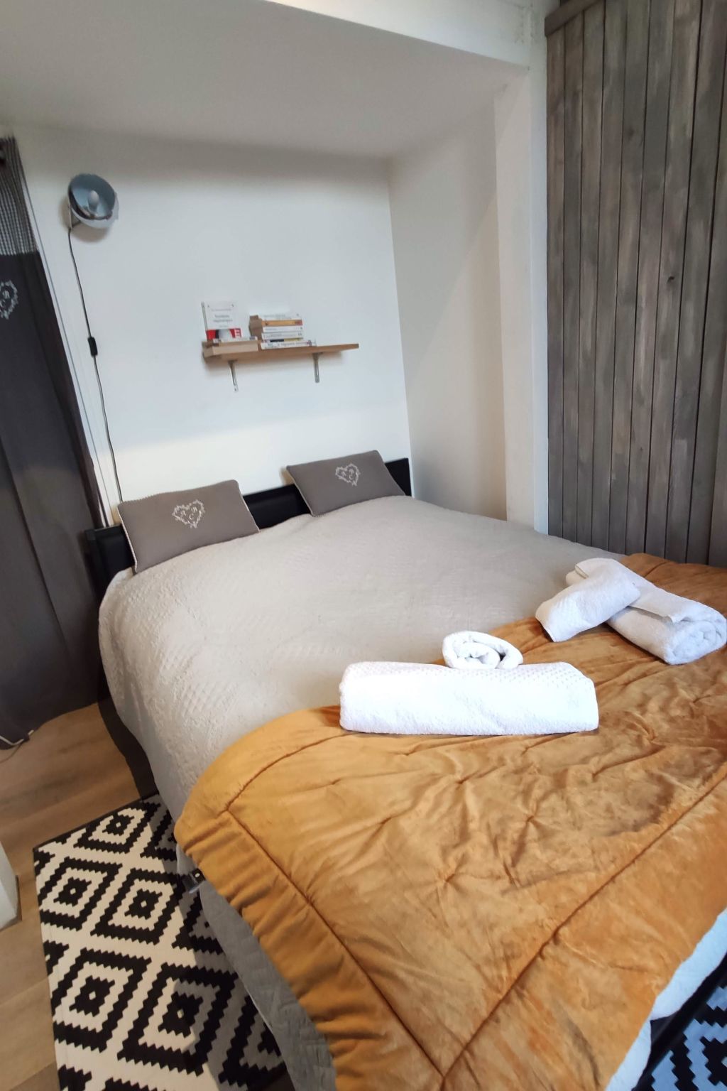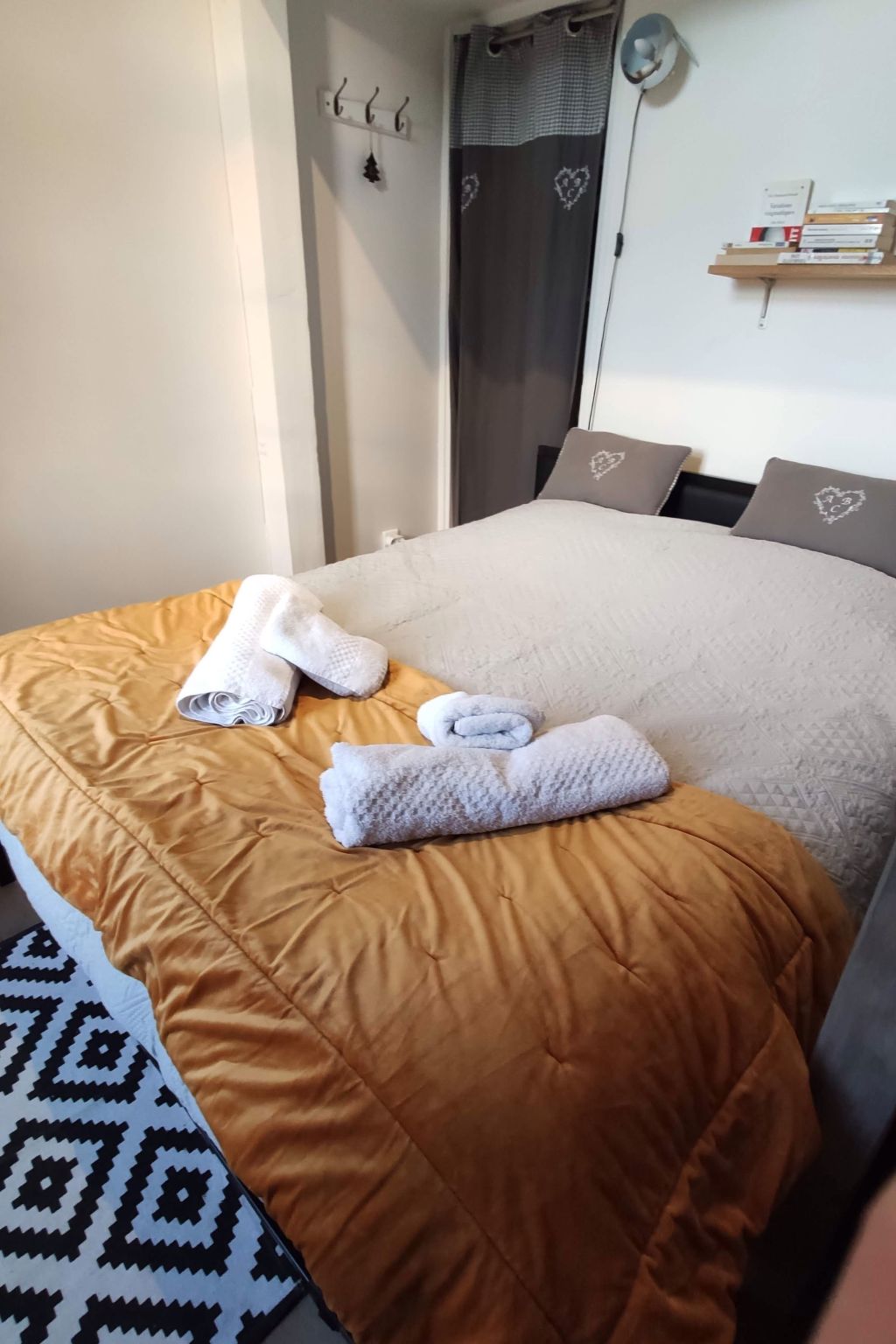 The interior of the flat evokes simplicity and functionality, offering everything you could need for an enjoyable stay. The kitchen is equipped with an induction hob, filter coffee maker, dishwasher, electric kettle and mini-oven, allowing you to prepare meals with ease. The main room, bathed in light thanks to its French windows opening onto the terrace, creates a warm and welcoming atmosphere. The bedroom, although compact, has a comfortable double bed and a wardrobe for your personal belongings. The modern bathroom includes a shower, washbasin and toilet, ensuring your comfort during your stay.